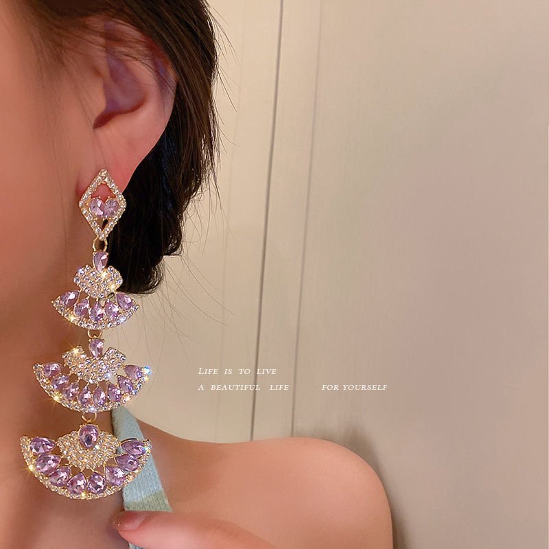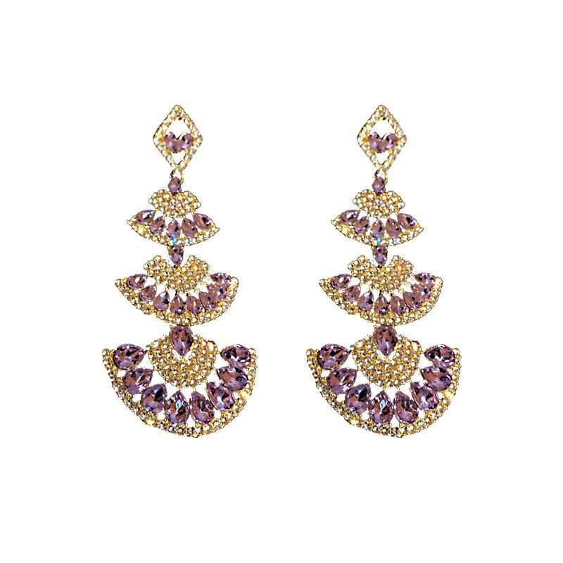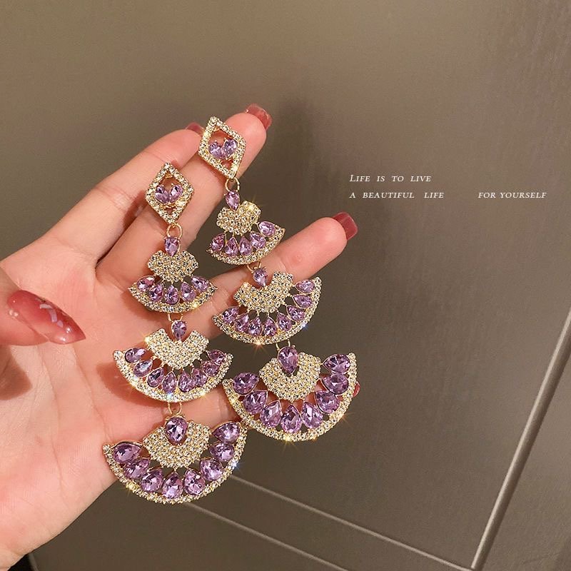 Luxury purple gemstone full rhinestone ultra-shiny earrings