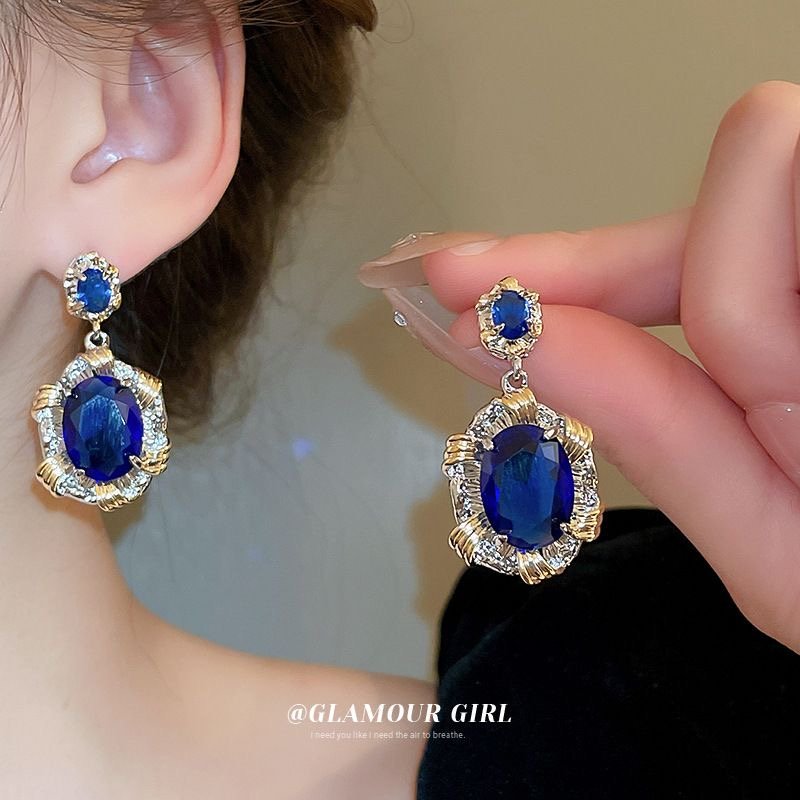 Silver Needle Heavy Industry Elliptic Zircon Earrings French quantity